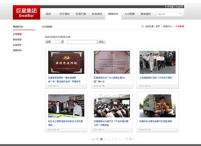浩军通过对网站界面整体进行创新的品牌化重塑,使用创新并且规范的网站视觉设计,打造符合巨星集团形象的高效、国际的网站形象。