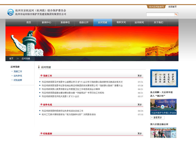 浩军在了解上海市京杭运河(上海段)综合保护委员会成立背景的基础上,为公司设置了分类明确的栏目架构,重点突出了公司信息公开,文化背景的特点。网页设计在保留了公司稳重风格同时,融入了历史、水韵味的细节设计,并突出对运河景观与申报世界文化遗产信息的呈现。