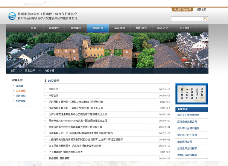 首先,上海市京杭运河(上海段)综合保护委员会由于有较强的国有、政府背景,加上其市场化运作体系,要求其公司网站信息实现综合性、公开性的特点。