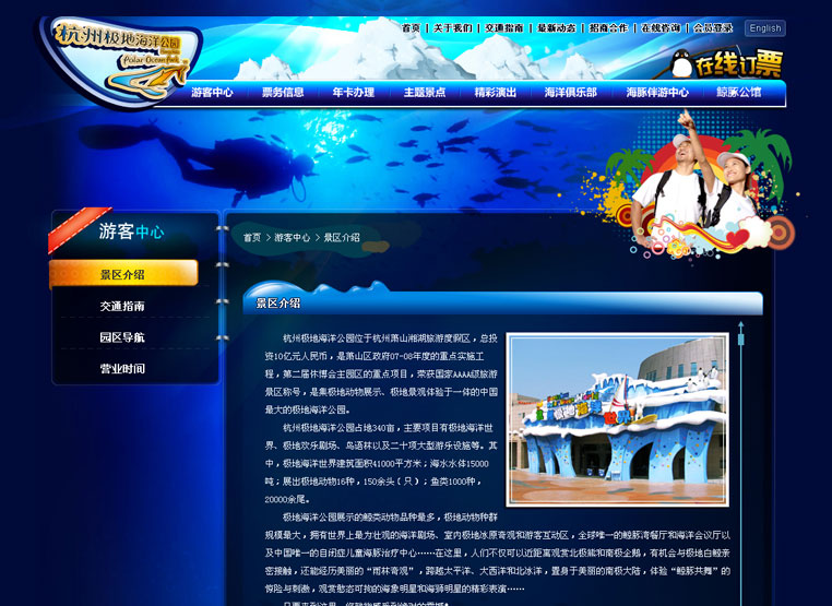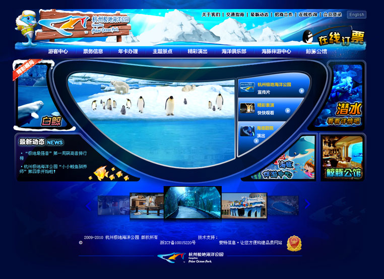 建设后的极地海洋公园网站,成功展现了公园的特色与风采,树立了公司的充满活力与生命力品牌形象,实现了公司网络运营与服务的建设目的。