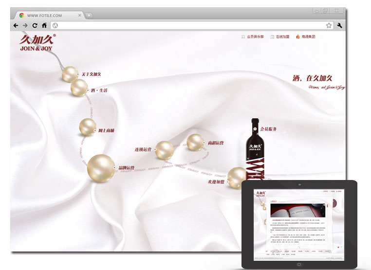 选用流水线式的页面呈现效果,完整传达久加久成熟的运营发展模式与一站式的服务体验。搭配FLASH与图片效果,灵动体现久加久的高段品质与生活文化。