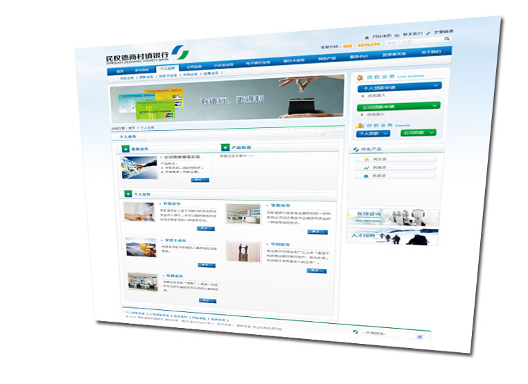 在设计策划过程中,浩军着手于两家银行之间的密切联系,因而在整体风格、排版布局、栏目架构上均保持着整体的统一性。而在辅图、文字标识等布局中,我们进行了具有针对性的细节设计,凸显民权德商银行的自身风格与特色。完善的安全操作系统设置,以保证可以为银行与用户提供最优质的服务。