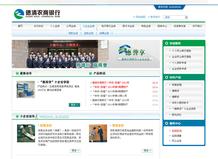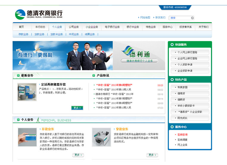 浙江德清农村合作银行虽然创立时间不长,但发展迅速,已初具规模。因而迫切希望通过系统的梳理、规划、整合,实现银行品牌整体的提升,并通过强大后台系统,建立完善安全的网上银行操作平台,从而提升银行的业务水平与技术能力,推动银行的信息化发展道路。