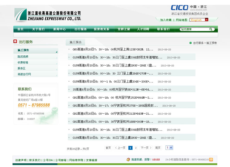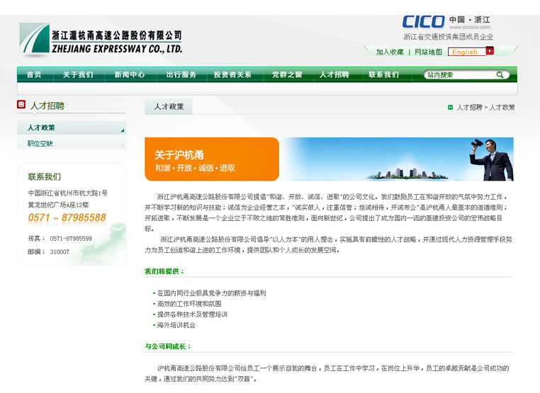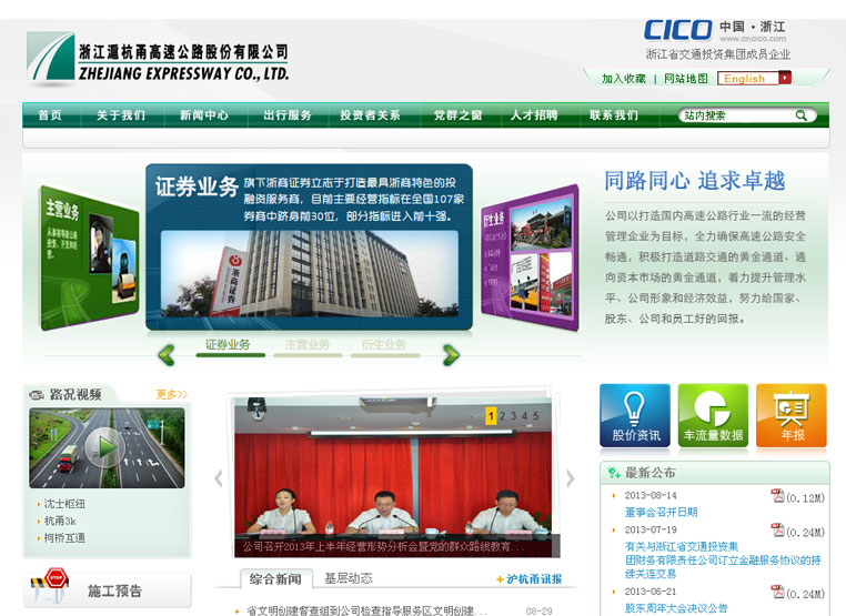 浙江沪杭甬高速公路股份有限公司是浙江省交通投资集团有限公司旗下资产规模最大的一家子公司。公司成立于1997年,注册资金43.43亿元人民币,主要从事高等级公路投资、建设和管理。作为浙江省唯一一家国有控股的境外上市公司,公司多次被《亚洲货币》、《福布斯》、《资产》、《财务总监》、《亚洲金融》等国际金融杂志评为中国10大最佳上市公司、最佳投资者关系企业、最佳公司治理企业。为跟上时代信息化发展需求,浙江省沪杭甬高速公路股份有限公司委托浩军为期打造具有针对性的网站建设方案。