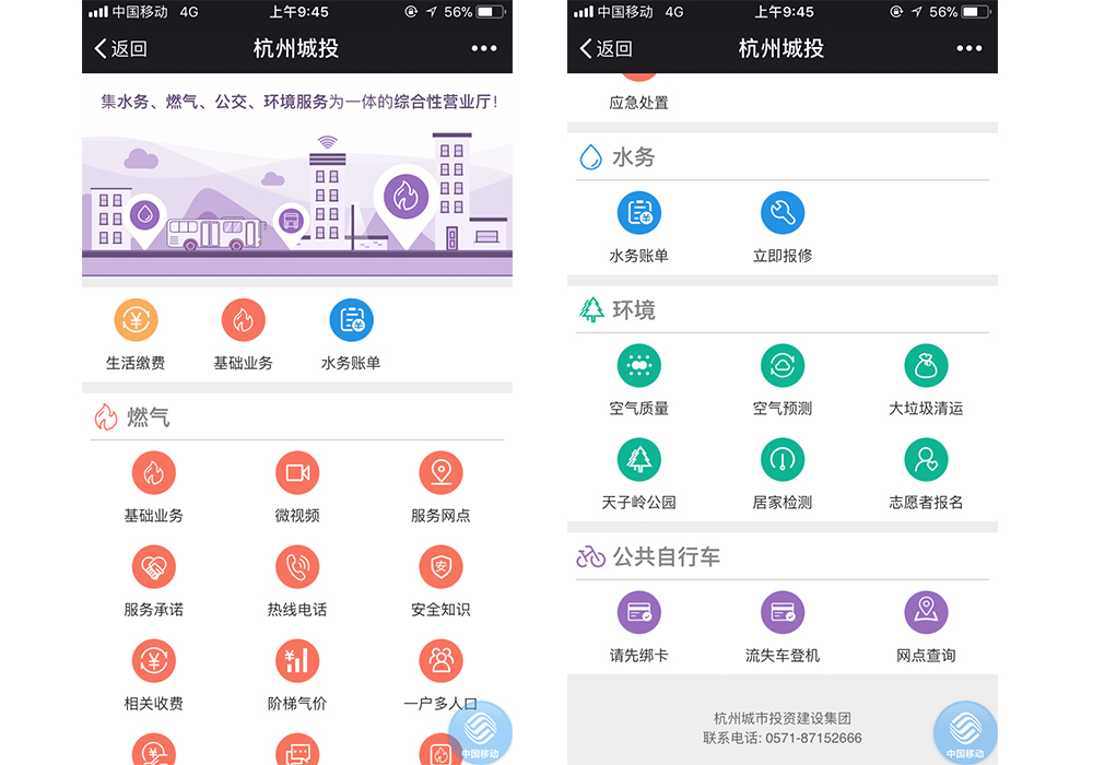 杭州城投发布“网上服务”界面